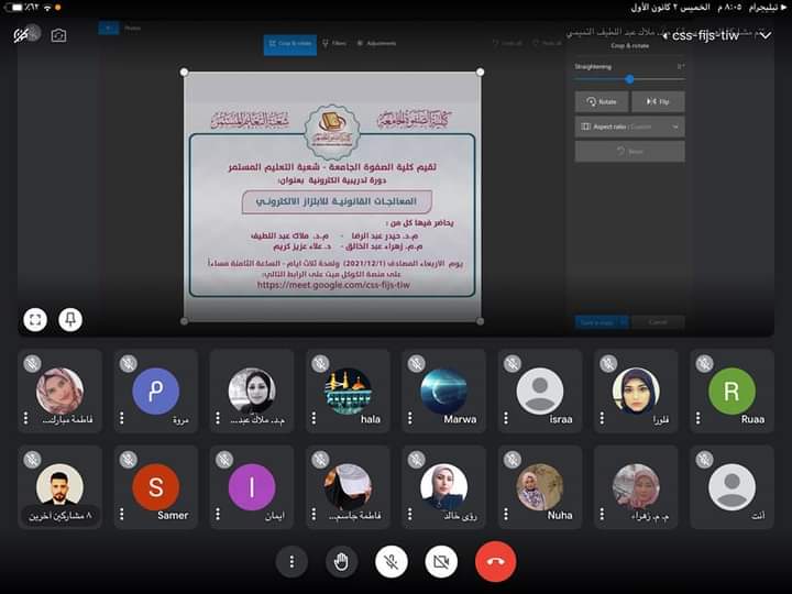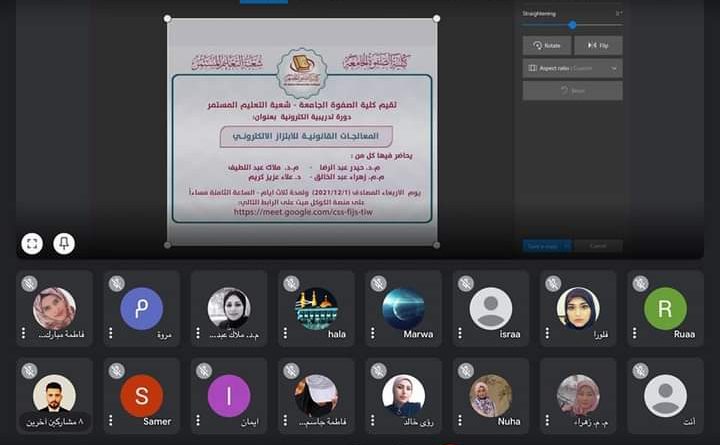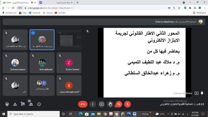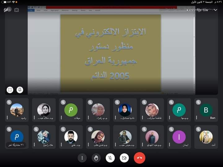 يوم الأربعاء المصادف (٢٠٢١/١٢/١) ولمدة ثلاثة أيام على منصة الكوكل ميت