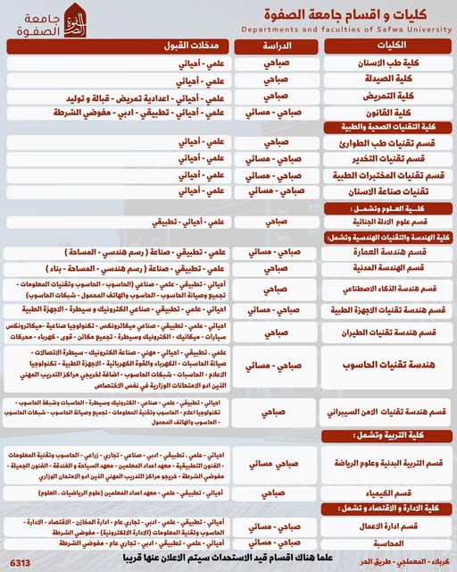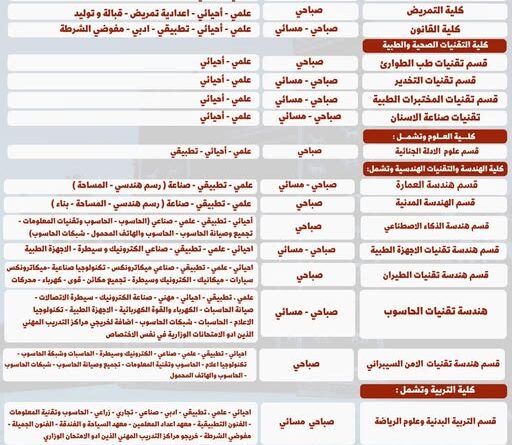 علماً ان هناك العديد من الاقسام الانسانية والطبية والهندسية قيد الاستحداث سيتم الاعلان عنها لاحقاً