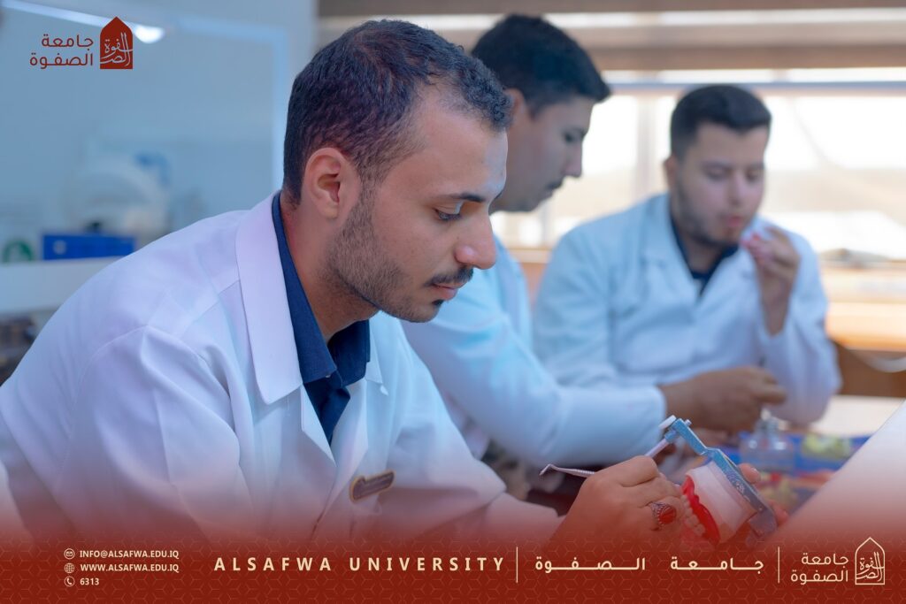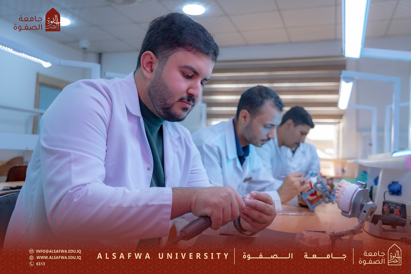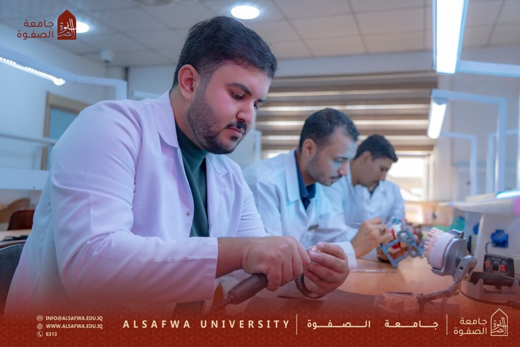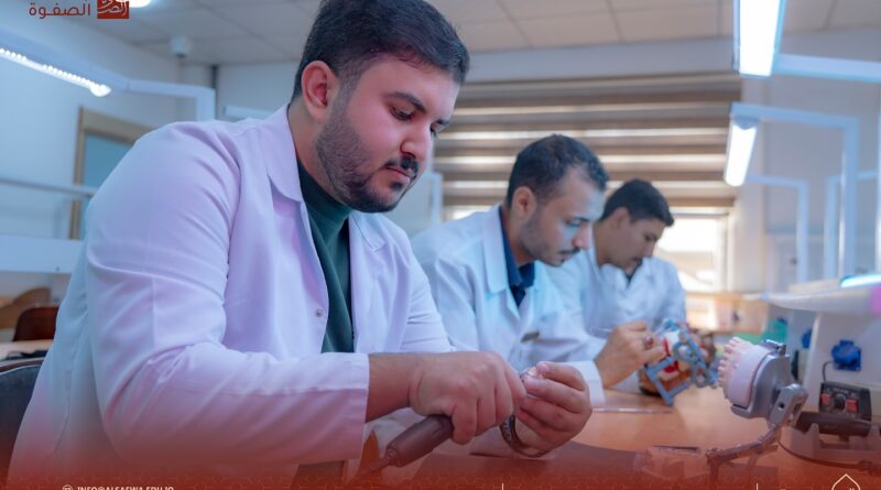 جانب من التطبيق العملي لطلبة قسم تقنيات صناعة الأسنان – كلية التقنيات الصحية والطبية / جامعة الصفوة، حيث يواصل الطلبة تنمية مهاراتهم العلمية والعملية تحت إشراف تدريسيين مختصين، وباستخدام أحدث الوسائل والأجهزة المتقدمة في هذا المجال الحيوي